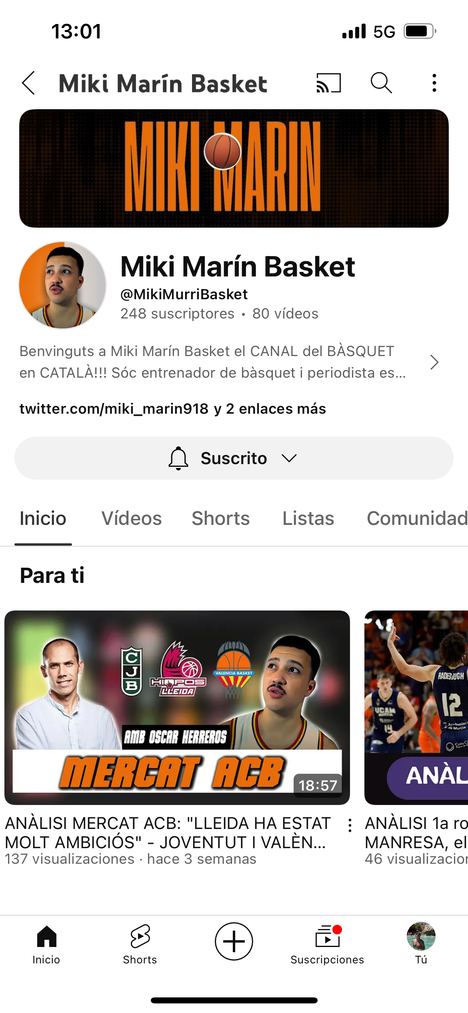 Miki Marín es un Periodista Deportivo que empezó su proyecto personal. El proyecto se basa en la creación de contenido en Catalán acerca del Básquet Español y Europeo, haciendo énfasis en los equipos Catalanes.
